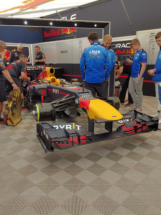 A big draw for the event was an actual Formula One car on display. It was the Red Bull V-8 powered VB8 that was used by Mark Weber when he won the 2012 Monaco Grand Prix. Many people don't have the opportunity to see a Formula One car in person, and it was really nice that Sir Jackie arranged for the car to be brought to the Classic. As icing on the cake, attendees were even able to see the Formula One car race around on the sprint course. It was especially wonderful to see the excitement on the faces of young and old as the iconic sounds of a Formula One car reverberated around the track.