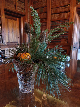 Therefore, it is only fitting that Lady Scott made sure to bring a little bit of this natural oasis inside the house. As you walk through Abbotsford, there is a festive aroma in the air as pinecones, branches, holly, and oranges studded with cloves are set up throughout the house.