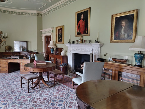 The Blue Drawing Room is where guests would have gathered for drinks before dinner. The painting is of Sir Thomas, the 9th Earl.