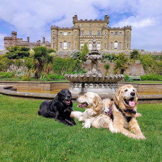 Before we officially start the article, I just want to point out that this was one of our happiest memories with our three canine angels- Finn, Stirling, and Sawyer (pictured above)- who were fortunate to visit Culzean Country Park before they crossed the Rainbow Bridge. We hope you enjoy this tour and how they feature in some of the photos from that special day.