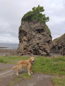 Sawyer didn’t seem to know what to make of the willow ‘sea monster’ sculpture in the Swan Pond. 😂