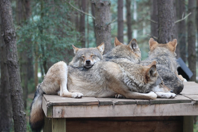 There are over 200 cold weather adapted animals at Highland Wildlife Park, and while I enjoyed seeing all of them, I did have a few favourites. It will probably not come to a surprise to long-time readers of the blog (who have read the various adventures that our canine crew have undertaken) to hear that one of my favourite attractions was the Wolf Wood. Wolves have long had a bad rap, and I believe have been given unfair status in popular culture. However, I think it’s important that we recognise their importance in our ecosystem. Fortunately, Highland Wildlife Park feels the same and they are home to a beautiful pack of European Grey wolves. On the day of our visit, they were clearly enjoying the mild September temperatures and napping together.