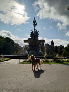 Ross Fountain was a favourite location for our Golden-Angel, Sawyer, when he wasn’t helping to guide our Edinburgh walking tours. The myriad of pictures of him hamming it up for the camera was proof: